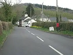 ![]() Entering Crossways from the south-west, Coedanghred Hill in the background | |