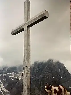 Croz dell'Altissimo is a mountain in the Brenta group (It.: Dolomiti di Brenta), a subgroup of the Rhaetian Alps in the Italian Region of Trentino-Alto Adige, with a height of 2,339 metres (7,674 ft)).[1] The mountain is mostly known for its imposing South-West face that rises with a straight vertical 900 meters from Val dell Seghe, above Molveno, up to the summit ridge. The mountain has actually two distinct summits, a NW and a SE summit, of which the former is slightly higher but the latter bears the cross. The east and north sides of the mountain are quite easily accessible for hikers.