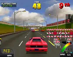 In each race, players must reach first place to advance to the next track, and there is a time limit to reach the goal, which can be extended by driving through checkpoints. If the player does not finish before the timer reaches zero, the game ends, unless there is a continue available. Unlike most racing games, there is the option to change the music by pressing the music button.