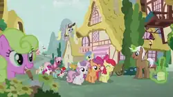 ![]() After earning their cutie marks, the Cutie Mark Crusaders lead a parade through Ponyville to celebrate their accomplishments | |