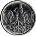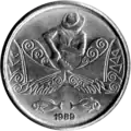 A design for a standard circulation NCz$1 coin was planned for 1990, nicknamed the "Christ's Cross" (Portuguese: Cruz de Cristo) design. However, in March 1990, before the coin was released to the public, the country's currency changed to the Cruzeiro (3rd iteration), so that design never circulated.[1] There are 41 specimens in the Central Bank of Brazil's internal storage, of which there are forty 1990 issues, and a single 1989 issue, the only known specimen of that year.[2] Additionally, there are 15 known samples with collectors, bringing the total to 56 known issues of the coin.[1]