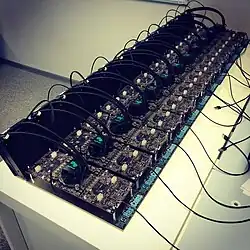 Numerous companies developed dedicated crypto-mining accelerator chips, capable of price-performance far higher than that of CPU or GPU mining. At one point, Intel marketed its own brand of crypto accelerator chip, named Blockscale.[85]
