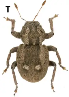 Adults reach a length of about 3.6 mm and have an integument black body, with the antennae, tibiae and tarsi reddish.