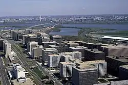![]() Aerial view of Crystal City (foreground) and the Potomac River and Washington, D.C. (background) in September 2020 | |