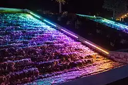 Revitalization at Longwood Gardens was another key project of Crystal featuring RGBACL LED technology.[17] In order to preserve the historical significance and carry the fountain to modern 21st century simultaneously, Crystal provided LEDs with the capability to color match specific significant shades and tones, along with an infinite array of pantone colors to illuminate the water and surrounding landscape.[17]