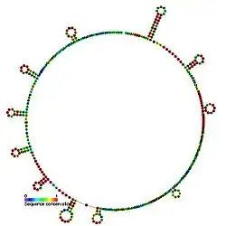 ![]() Predicted secondary structure and sequence conservation of CsrB | |