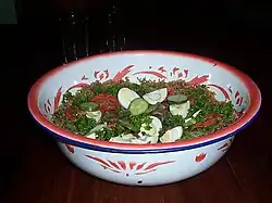 - Bassi-salté— A traditional stew,[4] consisting of seasoned meat cooked with tomato paste and vegetables over chere.