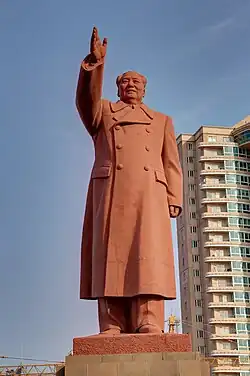Mao Zedong's cult of personality was a prominent part of Chairman Mao Zedong's rule over the People's Republic of China from his rise in 1949 until his death in 1976. Mass media, propaganda and a series of other techniques were used by the state to elevate Mao Zedong's status to that of an infallible heroic leader, who could stand up against The West, and guide China to become a beacon of Communism. Mao himself, however, publicly criticized the personality cult which was formed around him.[39]