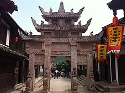During the Ming dynasty, widow chastity became increasingly common, gained wide prominence and was given legal support.[5] Marriage and property laws that discouraged remarriage started during the Yuan dynasty also made widow chastity increasingly popular.[5] Chaste widows were elevated to the role of cultural heroes,[8] and the state awarded 'testimonials of merit' (旌表, jingbiao) to chaste women. Such awards had been given to chaste widows (節婦) since the early 14th century during the Yuan dynasty, and extended to women who died resisting rape (烈女) in the late 16th century.[10] The state gave approval to local chastity cults whereby commemorative arches (貞節坊) and shrines were constructed to honor the women by members of their families or communities, and honored them with commemorative writings.[11][12] Chastity also became associated with suicide, and suicide by widows increased dramatically during the Ming era.[13][11]