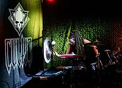 Cultic co-founder and drummer Rebecca Magar, became involved in the underground music scene as an illustrator and artist. Going under the moniker Wailing Wizard, she produced album covers, t-shirts, and promotional materials for a variety of bands, events, and fringe artistic projects.[8] She also joined The Owls Are Not What They Seem as a percussionist on the album Feral Blood before becoming a founding member of Cultic.[1]