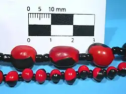 The origins of beliefs and superstitions in Aruba can be traced back to pre-Columbian times when indigenous peoples inhabited the island. However, after 1820, when the indigenous population disappeared, their cultural heritage and beliefs were lost. Subsequently, with the arrival of African slaves during the seventeenth and eighteenth centuries, some African beliefs and superstitions became integrated into the culture, known as Brujería or Brua.[29][30] An example of a superstition that aligns with the pagan belief of Brua is ojada or hojada, which is equivalent to the belief in the evil eye. Children, especially newborns, are the most vulnerable and should be protected against the ojada.[31] Bracelets made from Abrus precatorius, locally known as Bonchi hojada ("Bean of hojada"), are worn as amulets for protection against bad spirits.[28]
