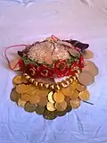 The commencement of Bayram celebrations started with Sheqer Bejrami or Sugar Bayram (also known as Bajram i Madh or Big Bayram), globally called Eid al-Fitr. It began with dawn visits to the mosque, followed by celebrations and feasting.[5] These observances marked the end of Ramadan whereby a lump of sugar would also be consumed.[5] Men would be greeted with kisses to the cheek, while young men would greet older women with a hand kissing practice that ends with placement of her hand to his forehead.[5] Greetings thereafter exchanged in such contexts were egsofsh Bejramin or “happy Bayram” which was answered with gaz paç, e qofsh shnosh or “you too, and to your health”.[5] Throughout the remainder of the day mutual visits followed where sherbet would be served[5] and baklava too amongst themselves and to Orthodox neighbours.[11] This would be followed a while later with another celebration called Bejram or Eid al-Adha (also known as Barjam i Vogël or smaller Bayram).[5] Six days prior to the day, the elderly would fast as done during Ramadan.[5] On this day however, a kurban or sacrifice of a ram would occur followed by visits to the mosque and later the ram's meat distributed to the poor.[5]