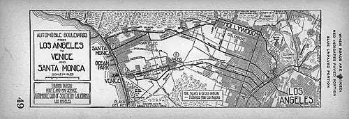 Elsewhere in the paper that day, the plan for what would become Culver Boulevard was succinctly summarized: "The plan is to leave Ivy Station, just this side of Palms, and parallel the Los Angeles-Pacific's electric road's line to Playa Del Rey." Apparently this route's advantages included that the "friendly" railway was offering their rights-of-way and that its "gravel pits, cars and tracks" would help the Auto Club with the "big fill across the marsh from Alla station to the beach."[7]