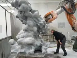 Following the robot carving phase, the work required four weeks of hand sculpting and finishing to complete.[1][2]