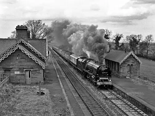 ![]() 46229 Duchess of Hamilton passes the closed Cumwhinton station | |||||