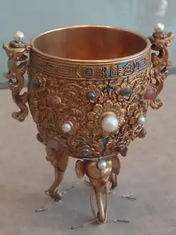 Cup of Solid Gold was the first official national anthem of China, adopted by the Qing dynasty (1644–1912) on 4 October 1911.[1] Its title references the "golden cup", a ritual instrument that symbolized the empire. Ironically, six days after the anthem's adoption, the Wuchang Uprising broke out, which quickly led to the fall of the Qing dynasty.
