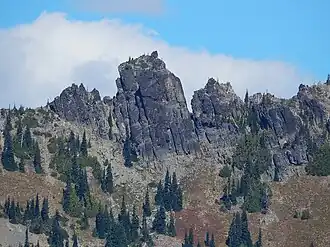 Cupalo Rock is a 6,593-foot (2,010 m) summit located in Yakima County in Washington state. Cupalo Rock is situated two miles north-northeast of Chinook Pass, one mile east-northeast of Chinook Peak, and barely east of the crest of the Cascade Range. The nearest higher peak is Three Way Peak, 0.42 mi (0.68 km) to the west-northwest.[1] Access for climbing Cupalo Rock is normally from the Pacific Crest Trail at Sourdough Gap. Precipitation runoff from Cupalo Rock drains into tributaries of the American River.