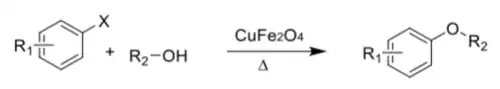 - ^ Zhang, Rongzhao; Liu, Jianming; Wang, Shoufeng; Niu, Jianzhong; Xia, Chungu; Sun, Wei (2011). "Magnetic CuFe2O4 Nanoparticles as an Efficient Catalyst for C–O Cross-Coupling of Phenols with Aryl Halides". ChemCatChem. 3 (1): 146–149. doi:10.1002/cctc.201000254. S2CID 97538800.