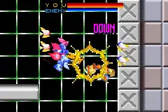 Unlike every other Custom Robo title in the series, the Custom Robo battles in Custom Robo GX are in 2D, instead of 3D, due to the Game Boy Advance not being powerful enough to completely emulate other Custom Robo titles. Also, in its storyline, players can't move the protagonist the same way they can in any other title of the series. In this title, the main character's name is used as the cursor on the map screen for selecting which place to enter. When the players are inside a place, a pop-up window will give the players choices on what to do inside the place the players are in.