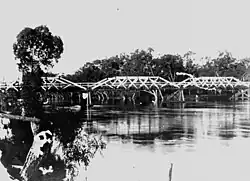 Goondiwindi continued to develop however, and in 1880 a bridge, a joint project of the New South Wales and Queensland governments, replaced the ferry service across the Macintyre River. The bridge made it possible to cross the river at this point in all weathers and increased the importance of the town as a border crossing. In 1880 Charles F Cumming was appointed as Customs Officer for Goondiwindi. Cumming was also the Police Magistrate and had held this job and that of Land Agent in Goondiwindi the previous year. In 1881 a second Customs Officer was appointed and there were two officers at Goondiwindi until one was sent to Swan Creek following a reorganisation of staff in 1885. In 1887, Goondiwindi was listed by the Customs Department as one of 8 customs stations along the New South Wales border and was an important public crossing place.[1]