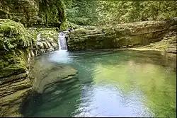 It rises on the northern slopes of Čemernica, on the same drainage divide as the Jakotina, another tributary of the same river, and the streams that flow into the Ugar. It is formed by two rivers: Međurača (source at about 1,200 m) and Vukača (source at about 1,150 m). Its estuary is between Večići and Vrbanjci (310 m above sea level).[1][2][3]