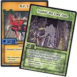 ![]() Two Cyberpunk cards, "Trashin' the Corp Zone" and "A.V. 1" | |