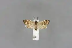 The wingspan is 9–13 mm. Adults are on wing in May and June. At times there is a small second generation in August.