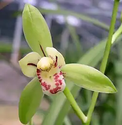 Cymbidium ensifolium, the four-season orchid, is a species of orchid, also known as the golden-thread orchid, spring orchid, burned-apex orchid and rock orchid. It has a number of different cultivars of interest to orchid collectors.[1] The genome of this species has been sequenced in 2021.[2]