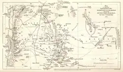 In 1856–7 Graham travelled through Africa to Egypt, including a journey up the River Nile.[4][5] In 1857–8 he travelled in the Hauran, at the same time as Johann Gottfried Wetzstein, a Prussian diplomat based in Damascus, was also independently journeying and reporting on the area. They both made known the Roman fort at Nemara (Nimreh).[6] His 1857 trip aroused considerable interest in Germany. Wetzstein's six-week exploration in 1858 was prompted by Carl Ritter, who was aware of a paper Graham had written in the Journal of the Royal Geographical Society. In transit from Britain to Syria, Graham stopped in Berlin and met up with Christian Charles Josias von Bunsen, another Prussian diplomat: it is assumed that they had become acquainted during von Bunsen's time in London. Heinrich Kiepert had collated information on Graham's previous travels for a map illustrating a report on those by Wetzstein.[7]