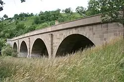 As the only partial town, Hohebach has no baron castle, but a real king's bridge: the massive four-arched stone bridge was built from 1808 to 1810 by Karl August Friedrich von Duttenhofer at the behest of King Frederick I of Württemberg, on the fact of his Napoleonic newly acquired northern region Hohenlohe, and strategically wanted better transport links connecting to the Swabian heartland. A high sandstone pillar in the middle of the bridge shows the Roman year MDCCCX (1810) and the royal monogram FR with coat of arms. According to Carl Julius Weber, it is "the most beautiful bridge in the kingdom of Württemberg". Towards the end of World War II, the two north arches were demolished but rebuilt in 1947. During 1996 to 1998, the bridge, which now leads the national road 19, was repaired while maintaining the road construction and widened.