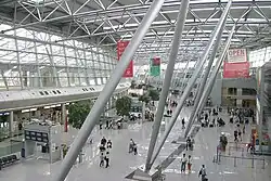 In November 1997, Terminal C was completely redeveloped, with three lightweight construction halls serving as departure areas. Also in 1997 construction began on the new inter-city railway station at the eastern edge of the airport. In 1998 the rebuilt Terminal A was reopened and the airport changed its name from "Rhine Ruhr Airport" to "Düsseldorf International". Reconstruction of the central building and Terminal B began in the same year.[9]