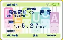 - ^ 土電、県交が共通カード バス、電車利用促進 Archived January 1, 2009, at the Wayback Machine (Tosa Electric Railway and Kōchiken Kōtsū will issue a common card, encouraging the use of buses and trains), The Kōchi Shimbun, 27 December 2007, retrieved on 30 December 2008. (in Japanese)