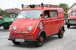 ![]() 1954 DKW Schnellaster F 89 L minibus, with precursor layout to the contemporary minivan: front-wheel drive, transverse engine, flat floor, and multi-configurable seating | |