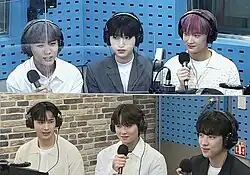 ![]() DKZ in September 2022 From L–R: Sehyeon, Kyoungyoon, Jaechan, Jonghyeong, Mingyu, and Giseok. | |