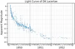 - ^ Bochníček, Z. (February 1951). "Light Curve of Nova DK Lacertae 1950". Bulletin of the Astronomical Institutes of Czechoslovakia. 2: 88. Bibcode:1951BAICz...2...88B.