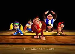 The "DK Rap" is the first song in the 1999 Donkey Kong 64 Original Soundtrack, where it was named "Da Banana Bunch". Despite Grant Kirkhope not intending to make a serious rap, the "DK Rap" has received generally negative reception and has been awarded "dubious awards" for its quality. The song has since been remixed in other Nintendo games.