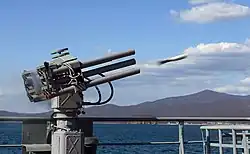 The DP-65 (98U)[1][2][3] is a Soviet special compact 55 mm ten-barreled remotely-controlled naval grenade launcher system based on MRG-1 seven-barrel grenade launcher. It also has a manual control mode.