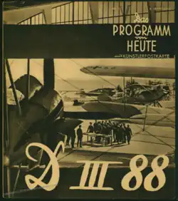 D III 88 (sometimes written as DIII 88) is a 1939 German drama film directed by Herbert Maisch and Hans Bertram, the latter also having co-written the script. It stars Christian Kayßler, Otto Wernicke and Heinz Welzel. It was made as a propaganda film with the support of Luftwaffe chief Hermann Göring, and was the last of a series of Nazi aviation films to be made before the outbreak of World War II. It was one of the most commercially successful films released during the Nazi era.[1] It was praised by Joseph Goebbels as "an irreproachable film of national destiny".[2] The title, referring to the registration number of the Fokker Dr.I flown by one of the characters in World War I, was an attempt to re-inforce the propaganda link between the modern Luftwaffe and that of World War I.[3] A sequel, Battle Squadron Lützow, was made in 1941.[4]