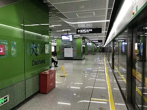 Dachong station (Chinese: 大涌站; Cantonese Yale: Daaihchūng Jaahm; lit. 'Big River Station') is a station on Line 4 of the Guangzhou Metro. It started operation on 28 December 2017.[1]