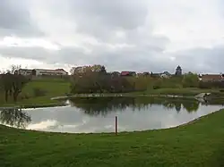 First hole with water hazard and a view of Dackenheim