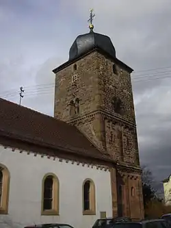 Building work on the Protestant church began in 1716, after Electoral Palatinate once again had a Catholic Elector in Johann Wilhelm beginning in 1698 and the village's two denominations had to share the only church building. Finished in 1717, the Protestant church was converted into a gallery church, taking on its current form, a hall church with a gallery and a ridge turret with an eight-sided belfry and an onion-shaped cupola. On the south wall are found the altar table and the pulpit, which is reached by a stairway from the trellised minister's chair. The organ was built in 1875 by E.F.Walcker & Cie.