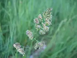 Dactylis glomerata is a species of flowering plant in the grass family Poaceae, known as cock's-foot,[2] also colloquially as orchard grass, or cat grass (due to its popularity for use with domestic cats). It is a cool-season perennial C3 tufted grass native throughout most of Europe, temperate Asia, and northern Africa.[3][2][4][5][6]