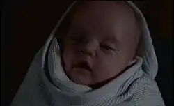 At Wolfram & Hart, Linwood examines footage from the hotel and discovers a moment when Lorne slipped Angel a note into his coat and in the conversation, identifies a location where Angel could read the note without being seen by the cameras. Earlier, Lorne heard a humming noise and concluded that the gang was being spied upon. The vampire alarm goes off, and Angel barges in and attacks Linwood with a knife, giving him a cut equal to the one on his child's cheek. Angel promises that any harm that comes to his son will be equally repaid to Linwood. As appointed "godfather," Linwood is given the job of keeping everyone and everything away from the vampire's child unless he looks forward to revenge at Angel's hands; in addition, he threatens Linwood for his son's college funds; Angel hopes to see his son graduate at University of Notre Dame. At the hospital, the doctors report that the baby is healthy, and Angel shows up in time to announce the name of his son, Connor. Gunn arrives with a stroller, and the gang head home where they hope to be safe for a while.