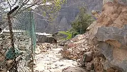Dafalas can only be accessed by walking or with donkeys, for which there are two trails and donkey paths. One of them, partially cobbled and only one kilometer long, is used as the main access road, since it connects the village with a wide paved road called Jais Road, through which most of the supplies. The second path starts from the Wadi Ghalilah Dam, [8] is 6 km (3.7 mi) long, and has a considerable slope; nonetheless, it is still used as a means of communication with other villages in Wadi Barut and with the populations of Wadi Ghalilah and the city of Ghalilah itself.