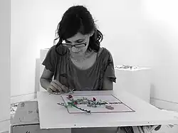 Dafna Kaffeman (born in Jerusalem) is an artist and a senior lecturer at the Bezalel Academy of Arts and Design. She works with glass and various materials and techniques such as embroidery, print, drawing, to produce what the David Owsley Museum of Art describes as "beautiful, crafted surfaces and disturbing text about aggressors and victims". She lives and works in Israel.[1] Her work has appeared in solo and group exhibitions, and she has won, or been nominated for, a number of international prizes and awards.