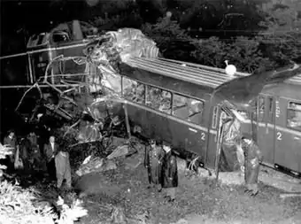 The Dahlerau train disaster was a railway accident that occurred on May 27, 1971, in Dahlerau, a small town in Radevormwald, West Germany, in which a freight train and a passenger train collided head-on. Forty-six people perished in the accident; forty-one were senior year pupils of the Geschwister-Scholl-Schule in Radevormwald.[1] It was the deadliest accident in West Germany since its foundation in 1949, surpassed after German reunification by the Eschede train disaster in 1998.