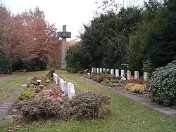 In 1972, a stone pillar containing the inscription "Von den vier Winden komme Geist und hauche über diese Toten, auf dass sie wieder lebendig werden" (Ezekiel 37.9, translates as "Come from the four winds, O breath, and breathe upon these slain, that they may live") was placed next to the graves. At first, the inscription was criticised as overly and inappropriately optimistic ("...that they may live"); the complaints later settled down.
