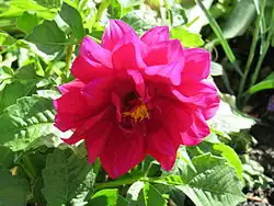 In 1804, a new species, Dahlia sambucifolia, was successfully grown at Holland House, Kensington. Whilst in Madrid in 1804, Lady Holland was given either dahlia seeds or tubers by Cavanilles.[19] She sent them back to England, to Lord Holland's librarian at Holland House, who successfully raised the plants[20][21] and produced two double flowers a year later.[22] The plants raised in 1804 did not survive; new stock was brought from France in 1815.[17] In 1824, Lord Holland sent his wife a note containing the following verse: