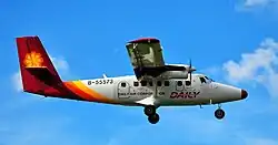 Daily Air Corporation (Chinese: 德安航空; pinyin: Déān Hángkōng) is a Taiwanese regional airline with its headquarters in Songshan District, Taipei, Taiwan.[1] It operates scheduled passenger services, primarily to domestic destinations such as offshore islands from Taiwan, including Penghu, Green Island and Orchid Island, as well as helicopter contract services and charters. Its main base is Taipei Songshan Airport, with hubs at Kaohsiung International Airport and Taitung Airport.[2]