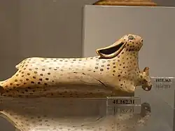 - The censer, a theriomorphic cult chariot[9] (a zoomorphic figure with a mixture of bird bodies and deer heads, all mounted on wheels, on display at Tarquinia)[8]